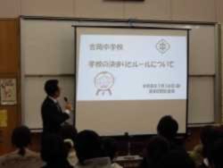 令和8年度に入学を予定している児童の皆さんと保護者の皆様をお迎えし、入学説明会を開催しました。学校生活のきまり等については生徒会本部役員の生徒からも説明がありました。保護者の方々には「子育て支援講座」もあわせて開催しました。ご来校いただいた皆様、ありがとうございました。