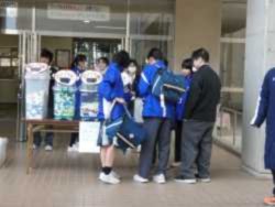 3年生中心の第79期から2年生中心の第80期へ。生徒会のバトンが引き継がれておよそ1か月。専門委員会と本部役員会が連携して「ハッピー愛語デー」の取組をしました。「思いやりのある優しい言葉づかいをしよう」というキャンペーンとあわせて、ペットボトルキャップ等の回収を行っています。今回は募金活動も実施しました。